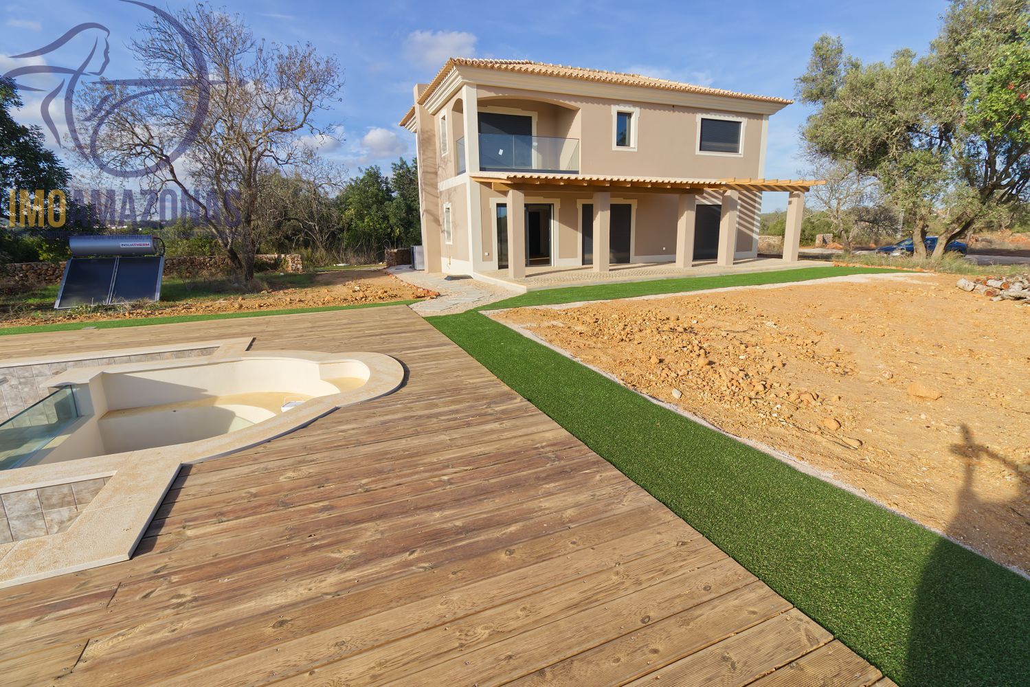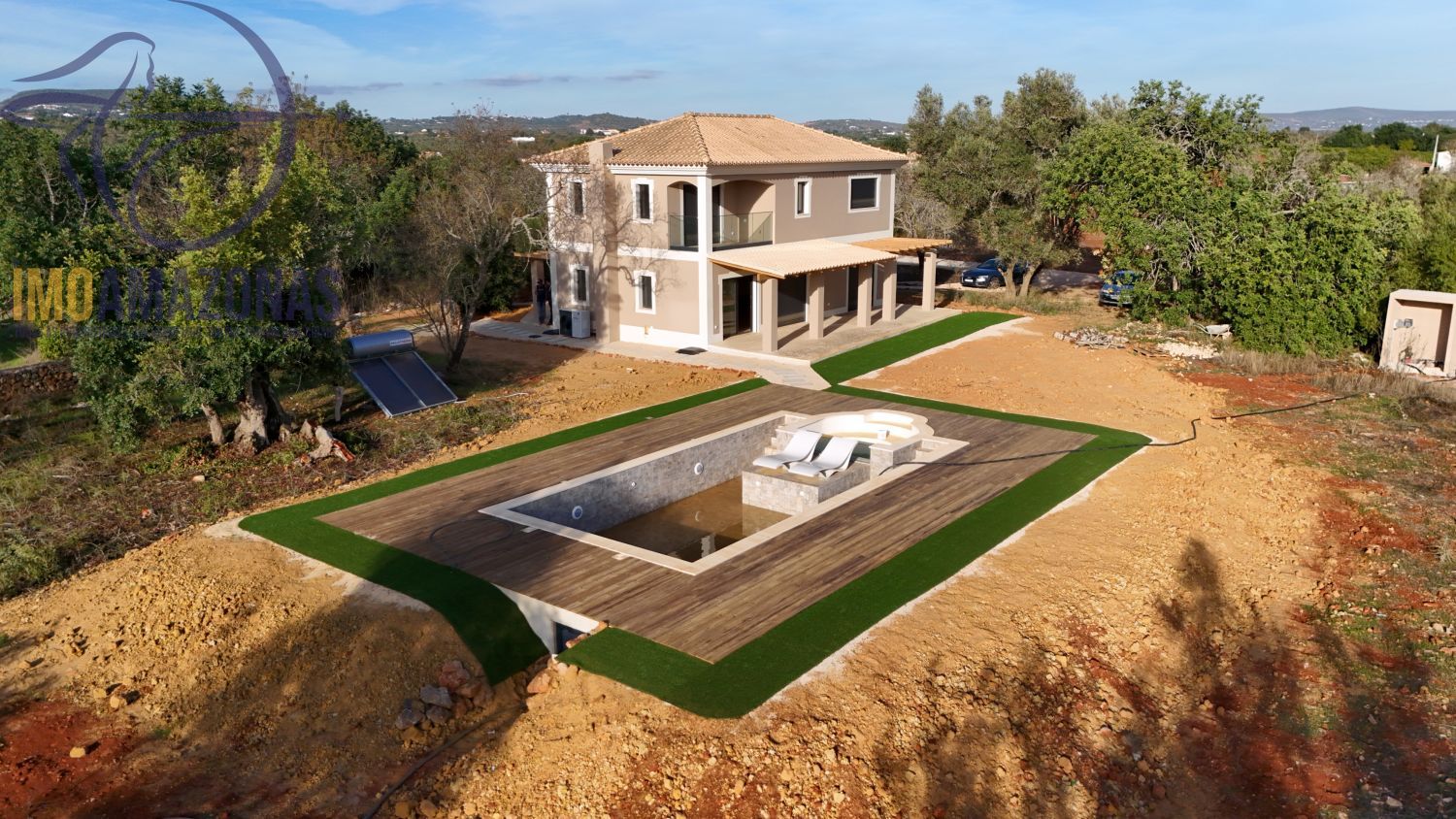 Moradia nova com piscina para venda no verdadeiro barrocal algarvio. Localizada em zona de campo e inserida num terreno com 5080m2. Esta moradia localiza-se a 20 minutos de carro de Albufeira, Silves e 40 minutos de Faro. É uma moradia nova, a estrear, com acabamentos de qualidade, espaços amplos, de arquitetura moderna mas de estilo algarvio. Todas as áreas são iluminados por muita luz natural. Está orientada para Sul, de forma que se encontra protegida do sol de verão mas permitindo a entrada do sol de inverno pela casa a dentro. Esta moradia está destinada a quem procura comprar uma casa de qualidade e moderna mas inserida na tranquilidade e harmonia do campo e do barrocal algarvio. Esta casa oferece uma privacidade total mas não se encontra isolada, vivem vizinhos próximos, o que oferece segurança e tranquilidade. A casa está equipada com uma cozinha moderna, aquecimento radiante no piso de toda a casa. Dispõe de lareira e de bomba de calor. As janelas são de elevada qualidade e com corte térmico. O conforto do seu interior está garantido. A propriedade tem um furo artesiano que oferece água ao terreno e à própria casa.